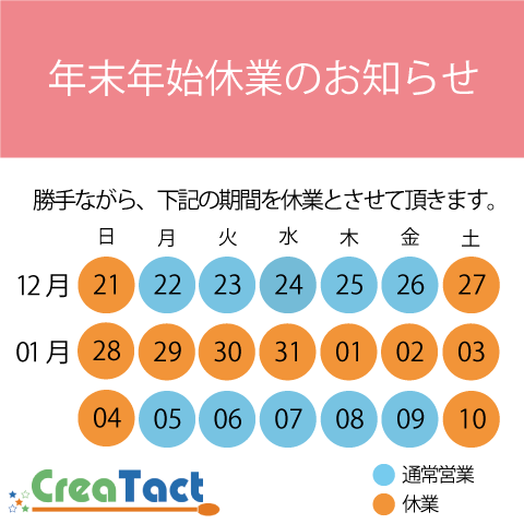 誠に勝手ではございますが、2025年12月27日~2026年1月04日まで年末年始休業となります。
